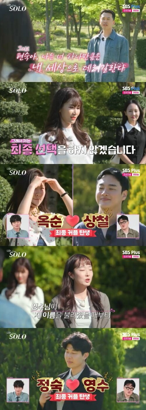 두 번째 커플은 정숙과 영수입니다. 정숙은 영수와의 대화에서 깊은 감정을 느끼게 되었고, 영수 역시 정숙의 따뜻한 성격에 끌렸다고 합니다. 이들은 서로의 마음을 확인한 후, 최종 선택에서 함께 하기로 결정했습니다.