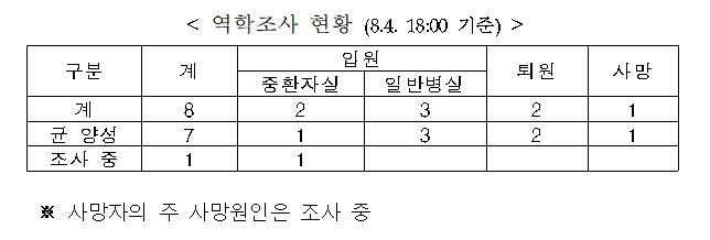 [4] 연합뉴스 - 강릉시 한 의료기관에서 이상 증상자 8명 발생…1명 사망 (https://www.yna.co.kr/view/AKR20250805032600062?input=feed_daum)