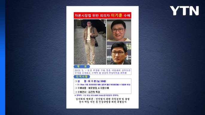 특검은 이기훈 부회장이 도주한 사실을 확인하고 긴급 공개수배를 요청했습니다. 이기훈은 59세로, 키는 178cm이며, 호리호리한 체형을 가지고 있습니다. 그의 사진이 담긴 수배 전단이 배포되었으며, 이는 국민들에게 그의 발견을 도와줄 것을 요청하는 내용입니다.