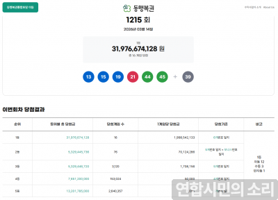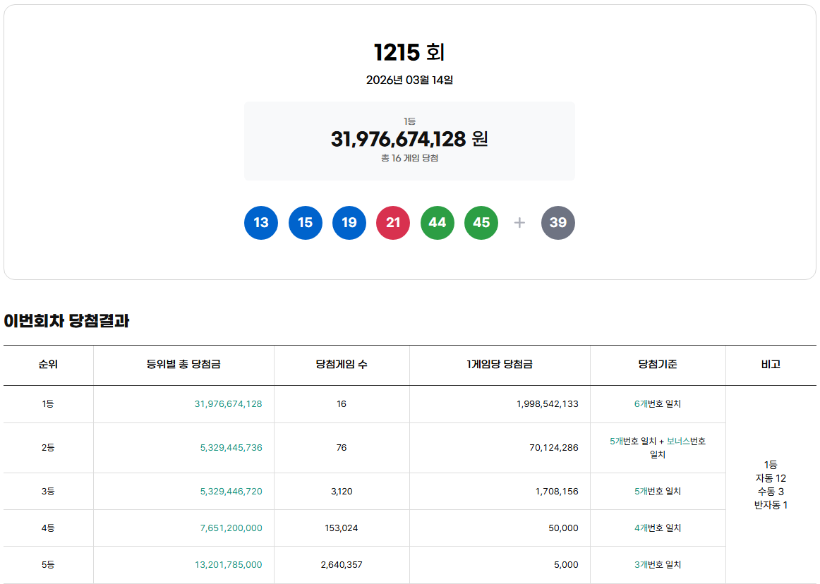 [1] 펴늬 - 로또 1215회 당첨번호 (https://pyony.com/lotto/rounds/1215/)