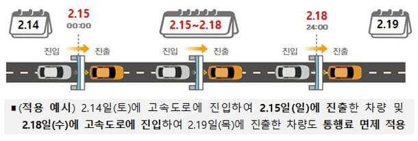 [3] 뉴스1 - 설 연휴 고속도로, 15일부터 18일까지 통행료 무료 (https://www.news1.kr/realestate/general/6067493)