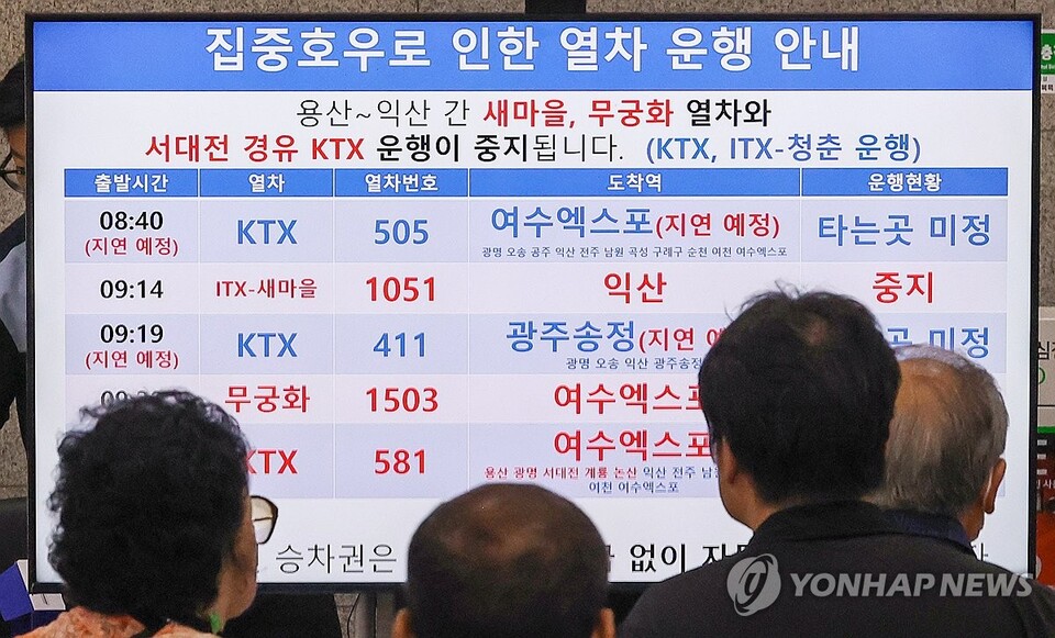[4] 노컷뉴스 - "폭우로 일반열차 일부 운행 중지…KTX는 정상 ... (https://www.nocutnews.co.kr/news/6371187)