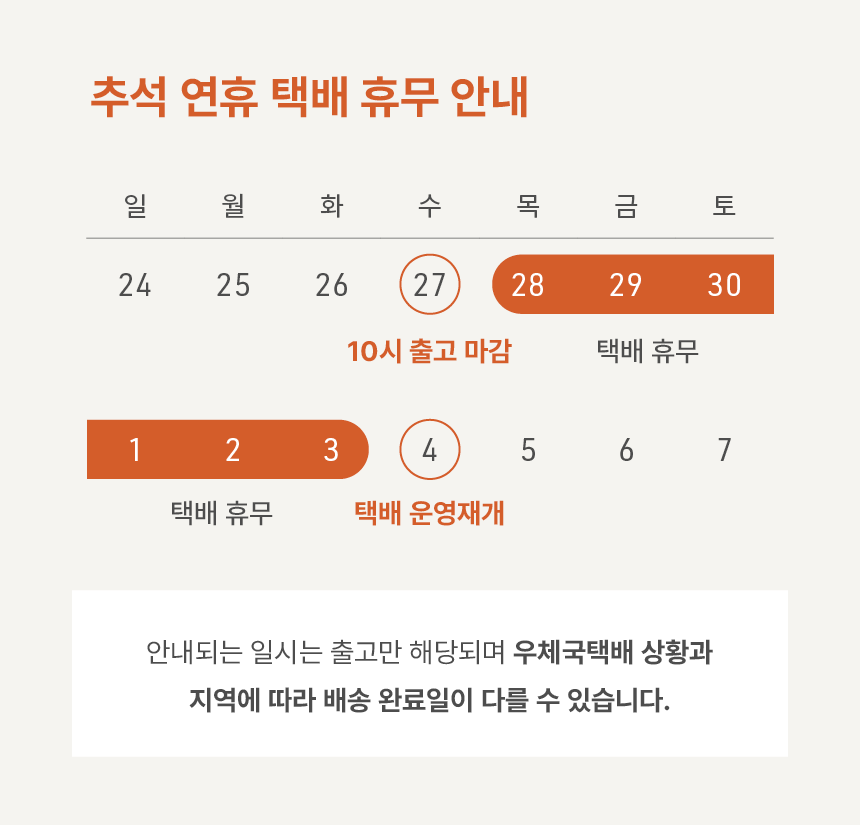 O-NE의 추석 연휴 배송 일정